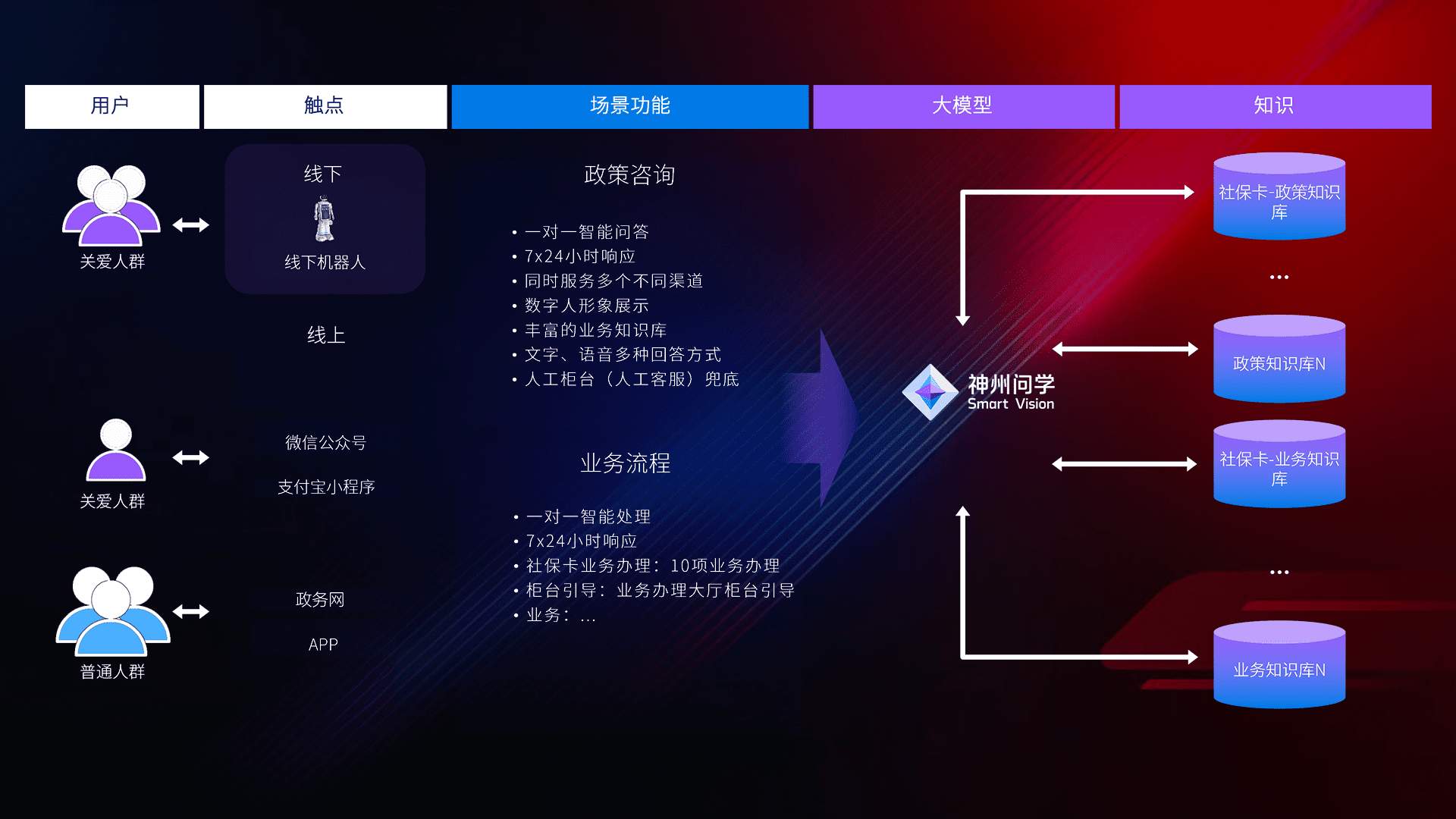 • 线上线下全覆盖:线上提供微信公众号、、、、支付宝小程序、、政务网、、、、app多种渠道,,,与线下机器人形成完整服务体系。。。